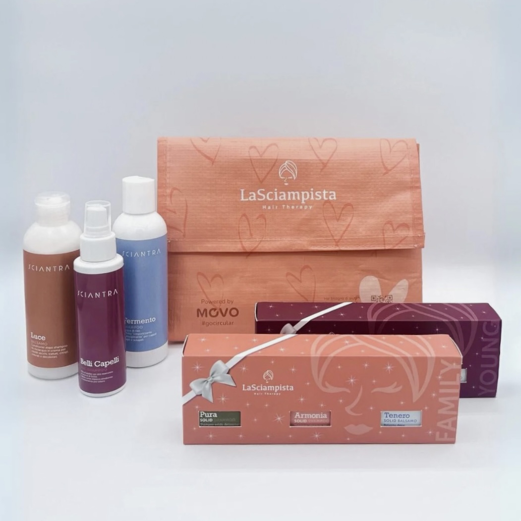 Confezione regalo sostenibile e riutilizzabile a marchio Lasciampista.